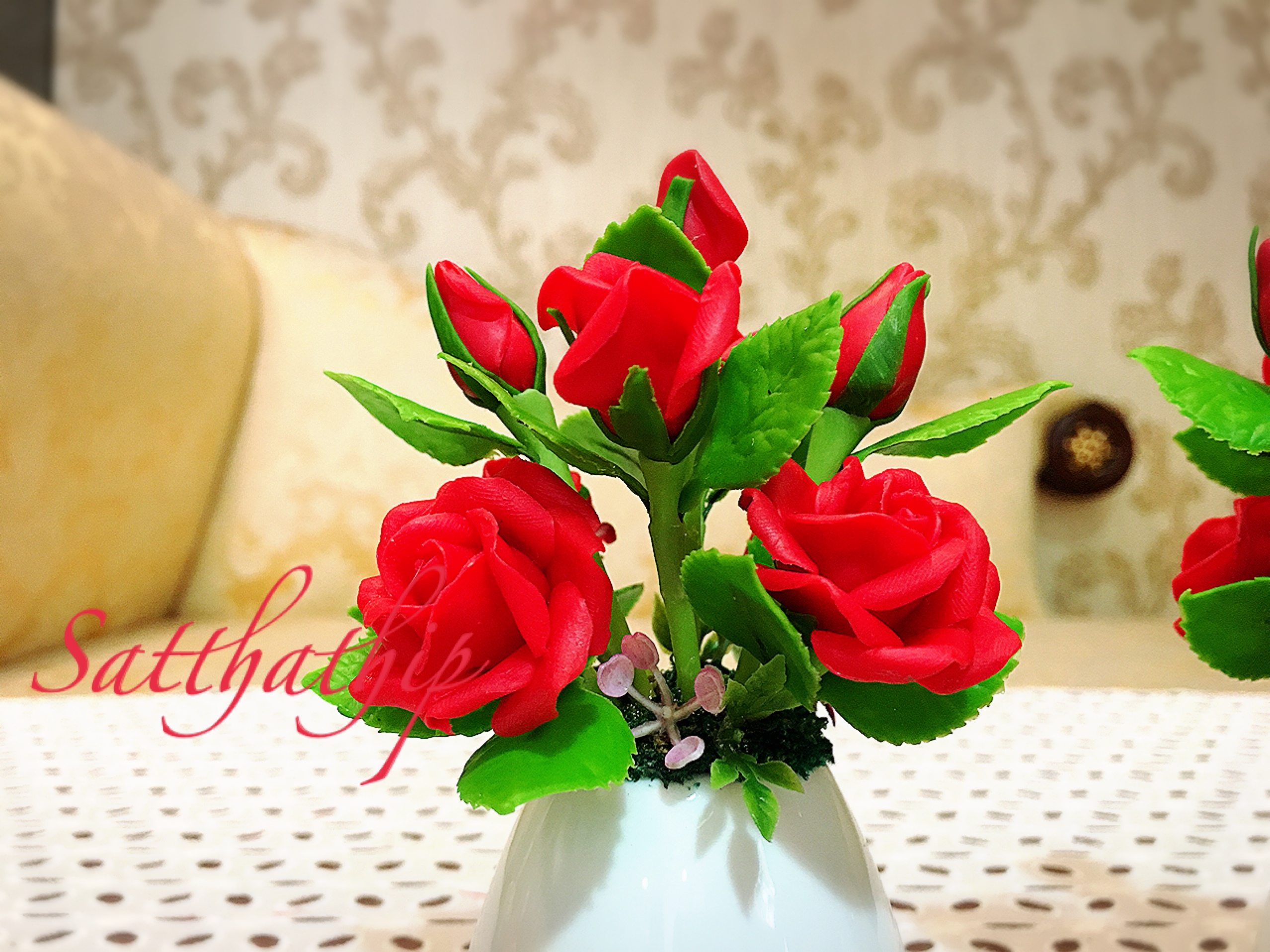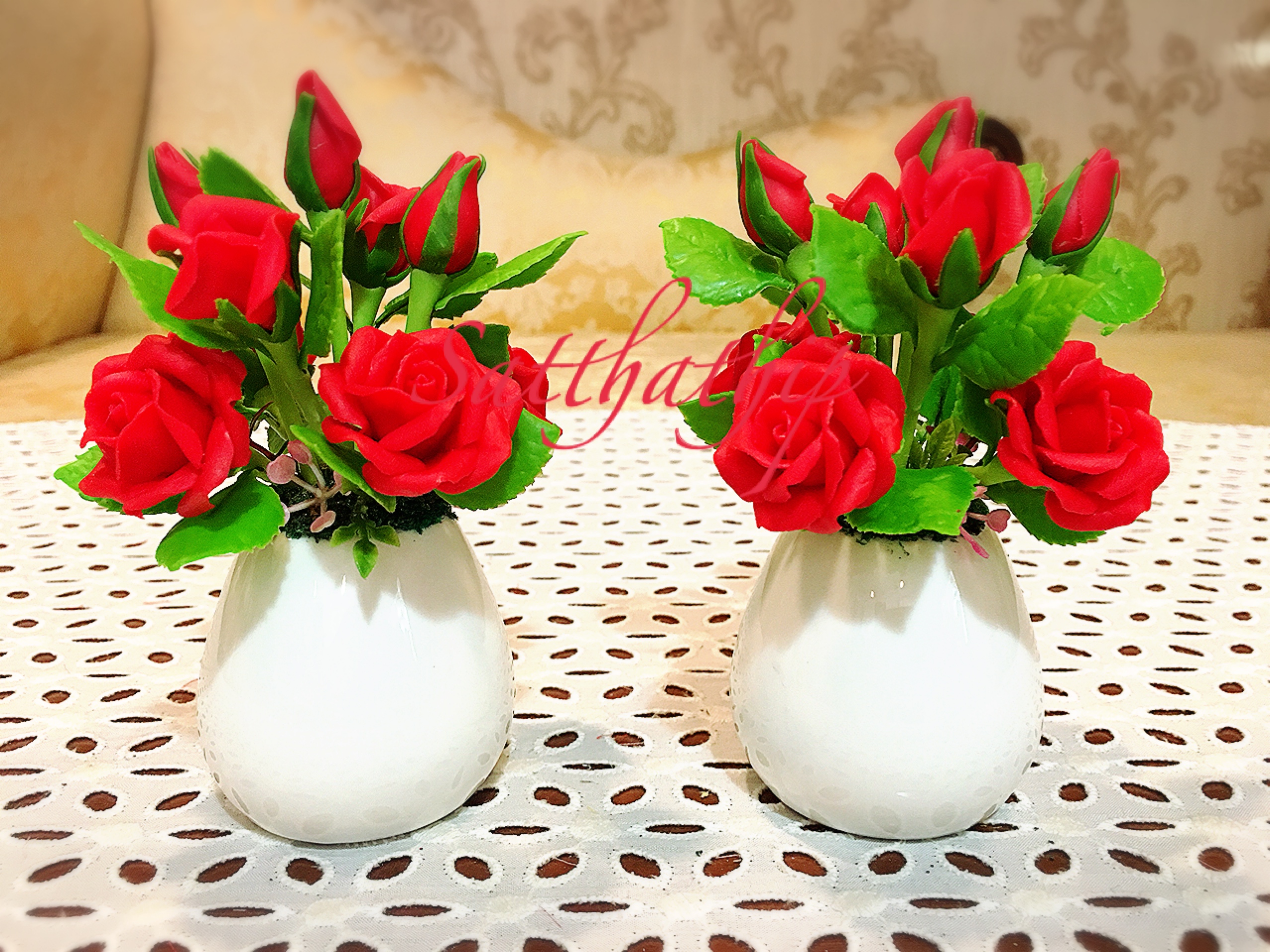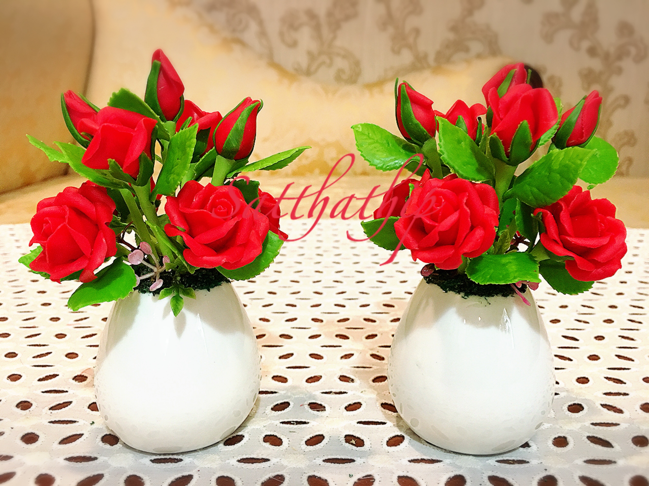 แจกันดอกกุหลาบ สีแดง ประดิษฐ์จากดิน